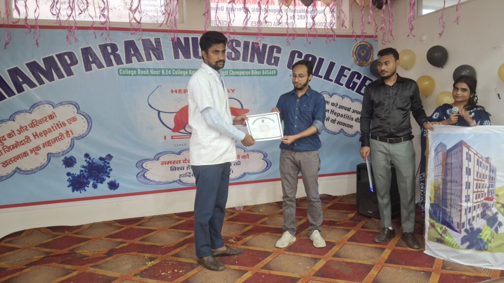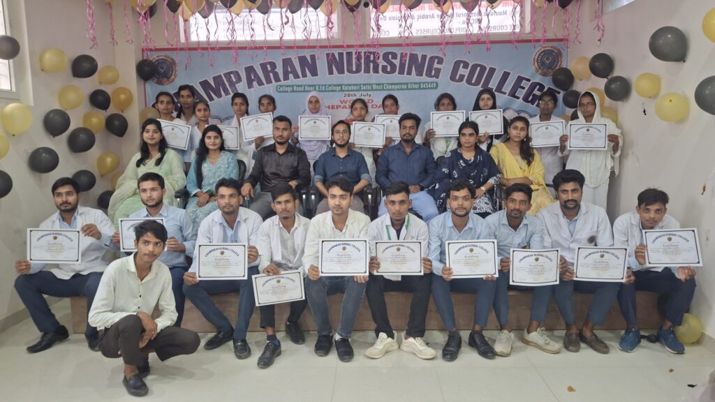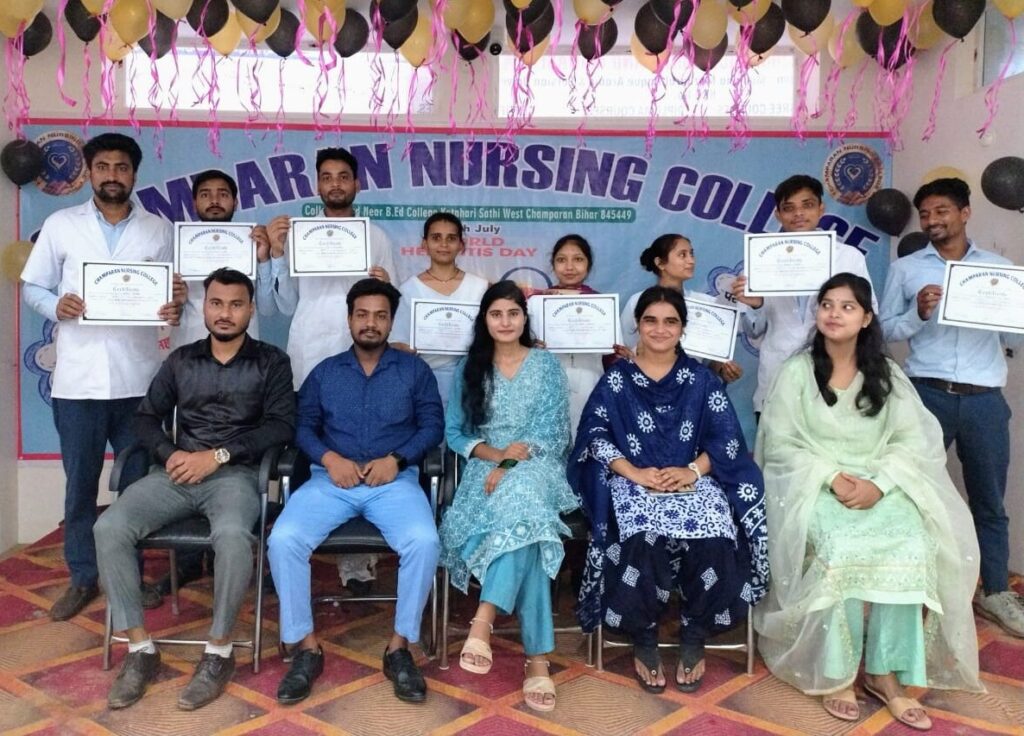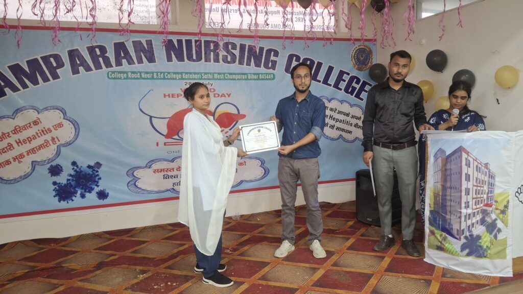 Champaran Nursing College proudly marked World Hepatitis Day with an engaging and informative event aimed at spreading awareness about hepatitis prevention, treatment, and global elimination goals. This year’s theme, “Hepatitis Can’t Wait”, reminded us that early detection and timely care are crucial in combating this silent but deadly disease.